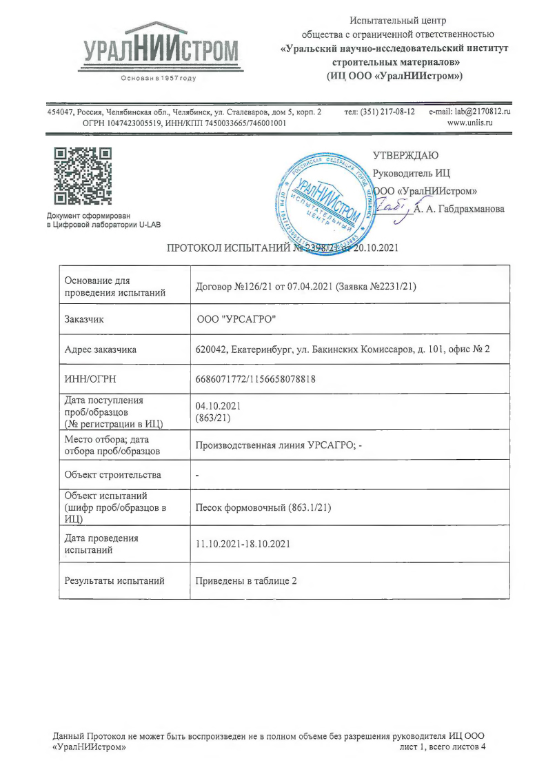 Нуждались в кварцевом песке. В качестве поставщика выбрали компанию УРСАГРО. В короткие сроки компания осуществила поставку 7 тонн песка. Песком и компанией довольны.